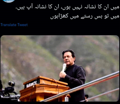 Imran Khan’s statement, ‘I am not their target, you are their target, I am just standing in the way”, shows the division between the people (the citizens) and the government (the state). Khan tells his supporters that the real enemy is the state or those in power. By saying “You are their target”, he makes people feel like victims in a struggle between powerful leaders.